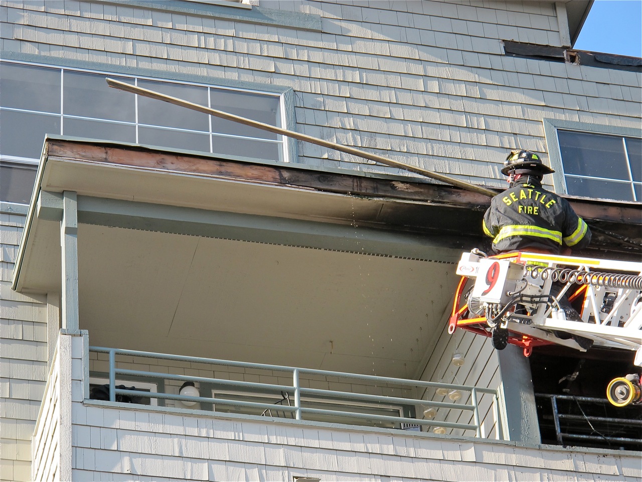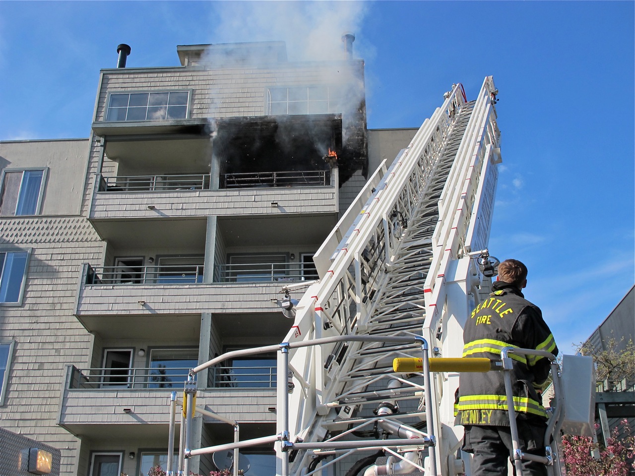 At approximately 5:03pm on April 23, 2012, Seattle Fire units responded to a multiple level fire at the 6700 Roosevelt Apartments. Flames were visible upon fire units arriving from the top floor dwelling.