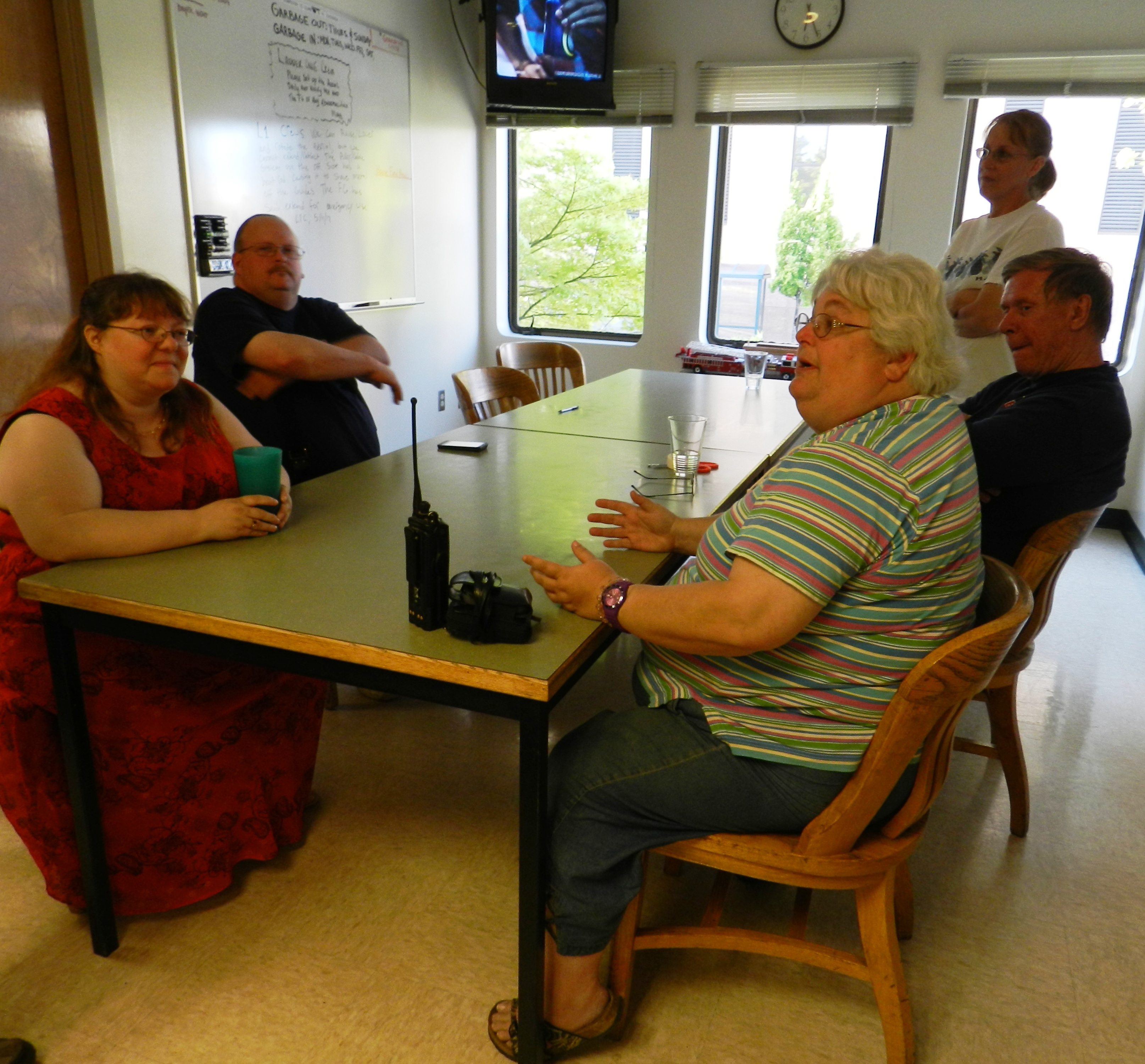 Saturday, May 12th, a group of volunteers and firefighters converged on the station gathering together to enjoy a homemade meal prepared by the Fire Buffs. The meal of Chicken Caccatore, Spaghetti and Sauce, vegetable Salad with Raspberry Dressing, Italian Bread with Oil Dipping Sauce. For dessert, Apple, Peaches or Strawberry Rhubarb and Vanilla Ice Cream. It was enjoyed by all.