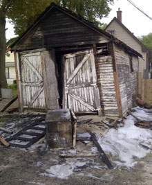 The fire started at about 3 a.m. in the 700 block of Aberdeen Avenue and left a small, wooden garage scorched.