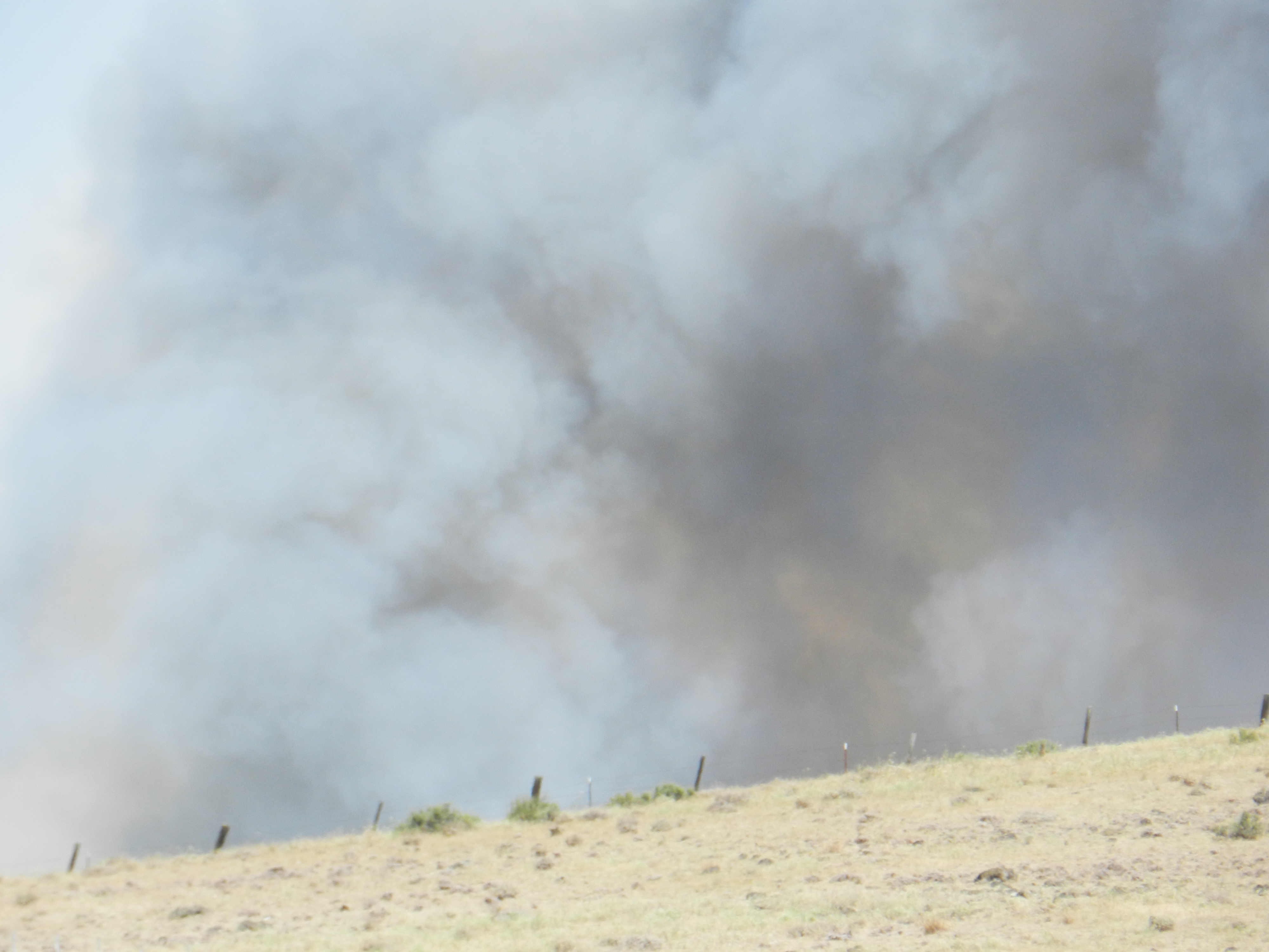 Smoke billowing behind the ridge could be seen from the Interstate.