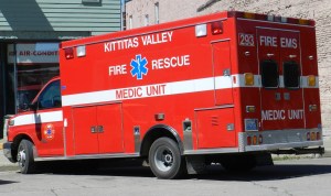 This fire crew was seen leaving the Fire Camp based out of a local school in the town of Cle Elum.American Red Cross vehicle parked in downtown Cle Elum.Kittias Valley Fire & Rescue Medic 293 parked downtown Cle Elum.Fire Brush Truck coming through Cle Elum, possibly returning from fire incident back to Fire Camp.King County Fire District #44.
