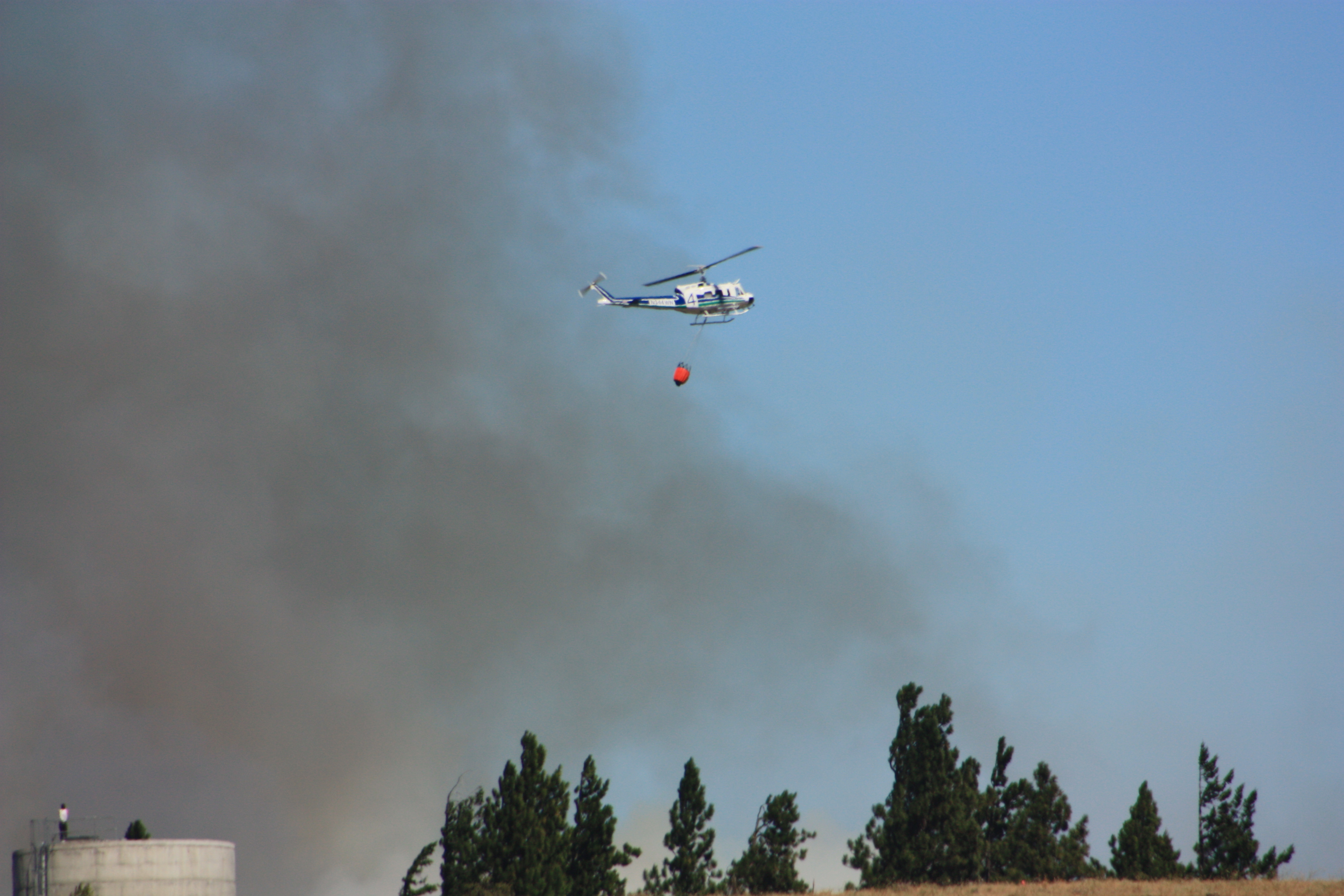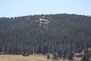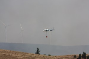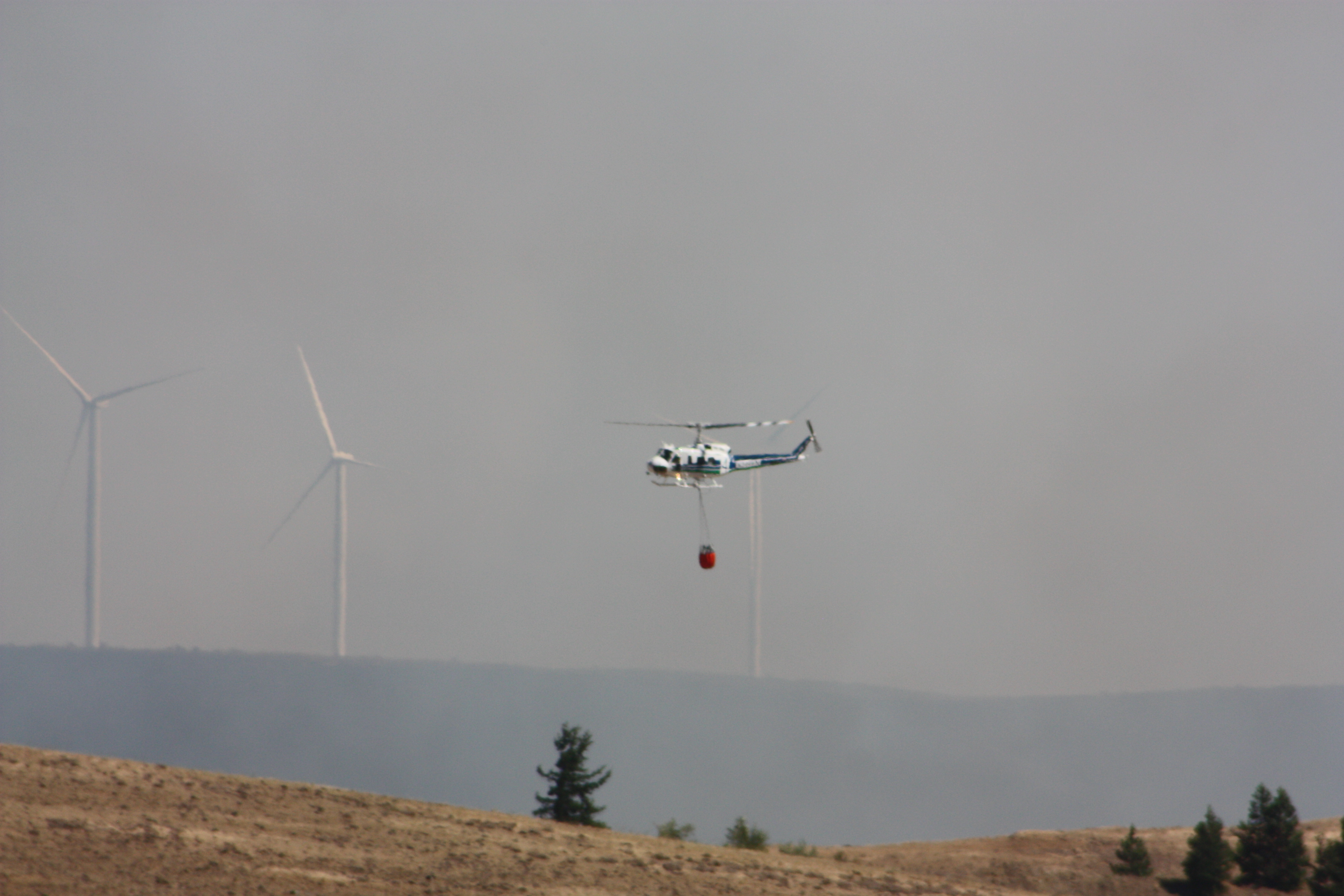 Helitac with a water bucket near the Wind Farms. Photo by Eric Swenson