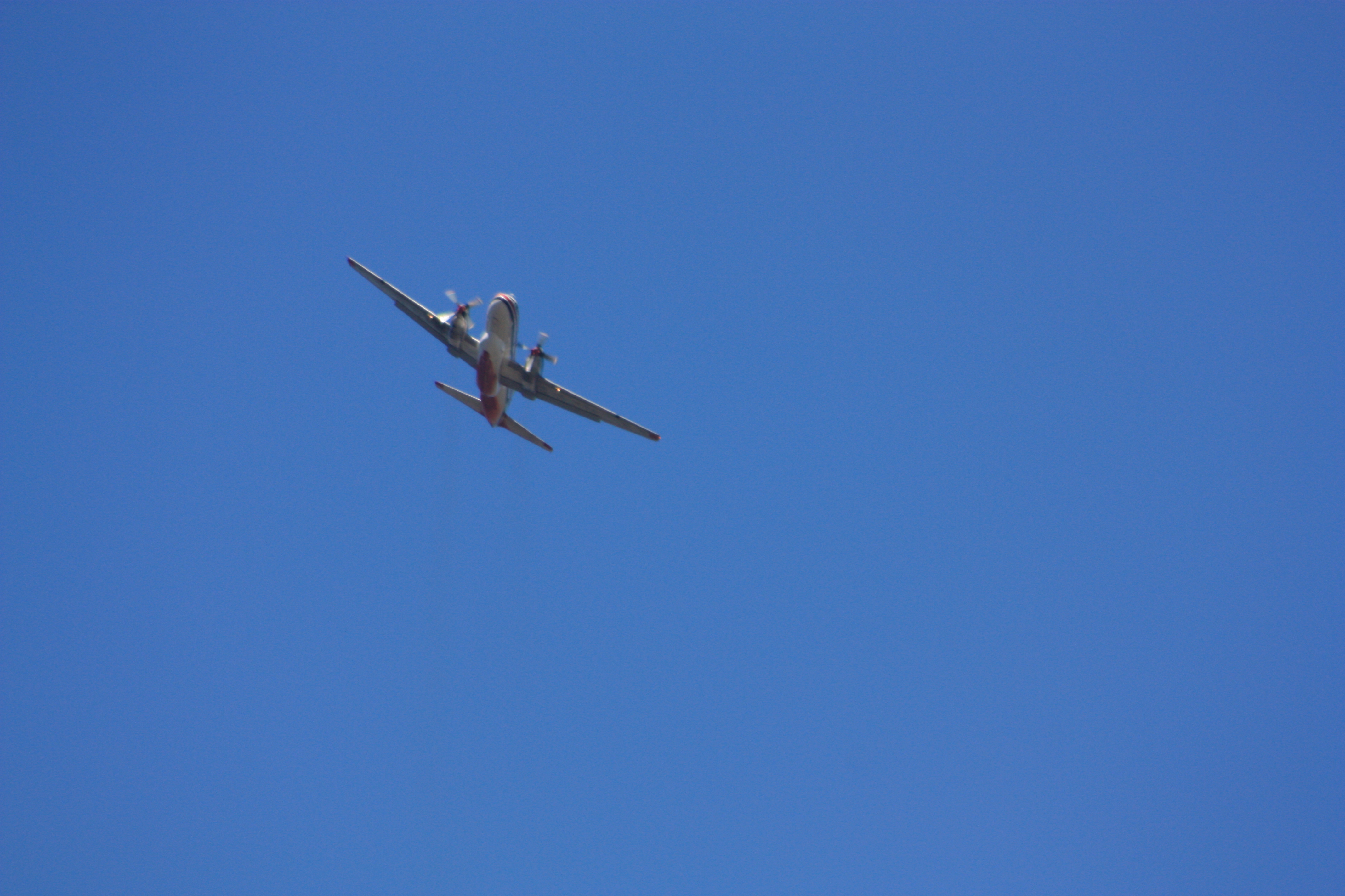 A Tanker with Fire Retardant on board flies overhead. Photo by Eric Swenson.