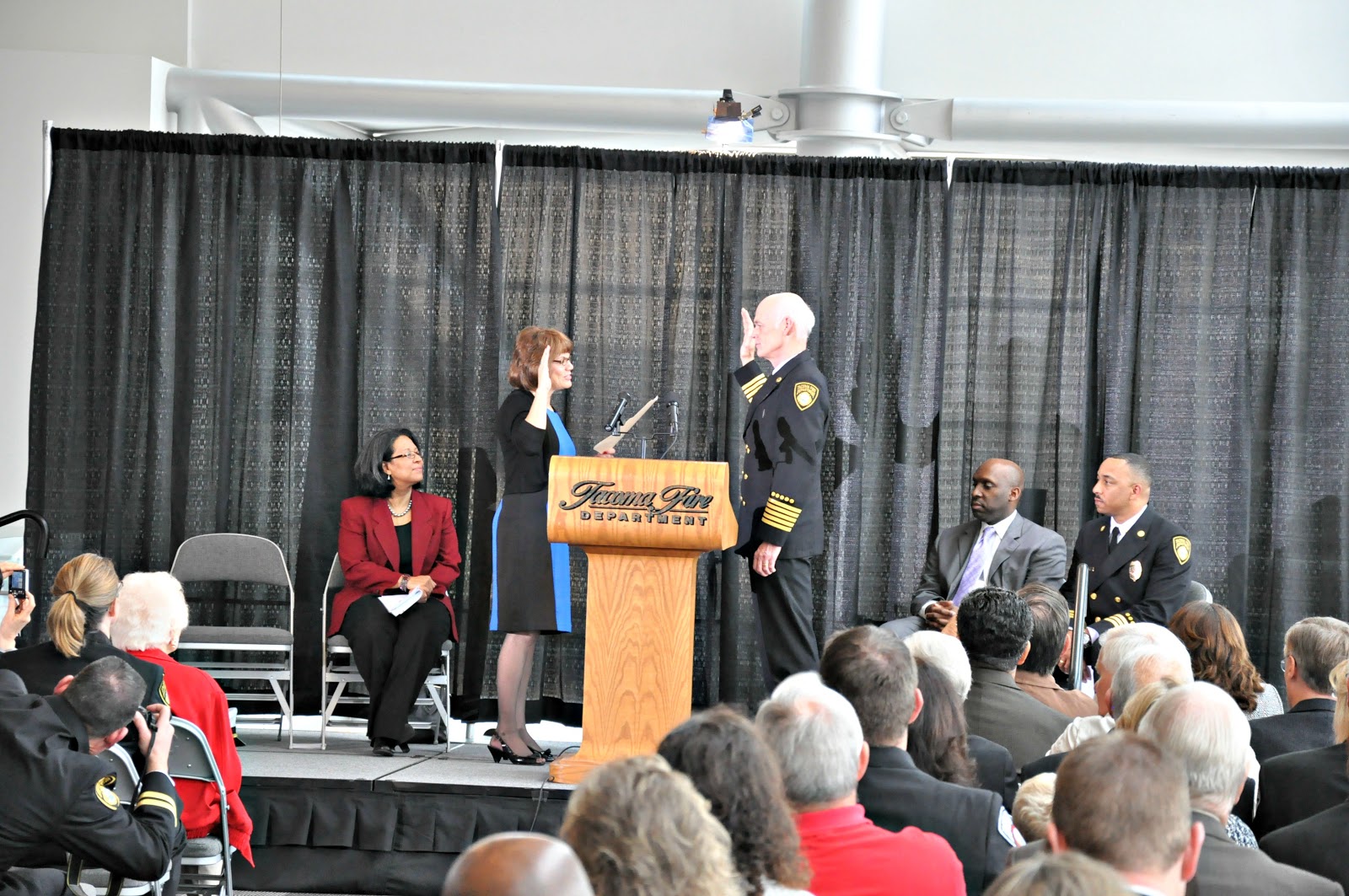 Surrounded by family, friends and colleagues, Tacoma Fire Chief James P. Duggan was sworn in at an Oath of Office Ceremony this afternoon.