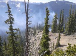 This afternoon, fire crews conducted a burnout operation to strengthen fire lines and reduce fuels along the southern flank of the fire in the Tonahutu Creek drainage. Smoke was visible in the communities of Estes Park, Grand Lake, and Granby. The objective of the firing operation was to prevent movement of the fire to the south, across the Tonahutu Creek. Acreage of the fire will likely expand following tonights flight to map the fire using thermal imagery. Initial assessments indicate that the firing operation successfully strengthened the southern flank of the fire.