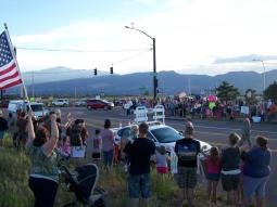 The Community is out full force for all firefighters battling the Black Forest Fire. Here you can easily see them cheering them on at a local road block manned by Law Enforcement.