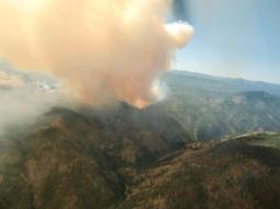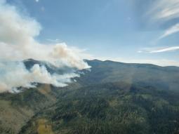The Goat fire is located southeast of Salmon Mountain lookout. Fire activity has been moderate; is located on a rocky east facing slope with little fuel.