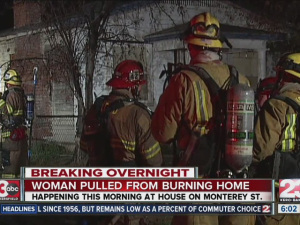 BAKERSFIELD, Calif. – A woman and her pet dogs were rescued from a house fire in East Bakersfield early Monday morning.