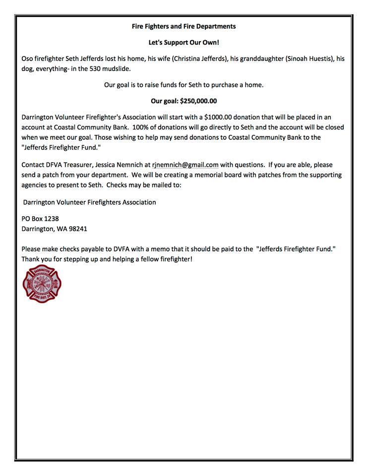 Today, we are asking our readers, supporters, followers and everyone else in between to help a Hero in Need: Oso Firefighter Seth Jefferds. He has lost his wife, granddaughter, dog and family home.