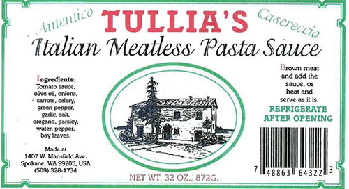 FOR IMMEDIATE RELEASE – September 3, 2014 – Tullia’s is recalling Italian Meatless Pasta Sauce code 530140. This recall has been initiated because a records review by the Washington State Department of Agriculture revealed that one batch of sauce produced with the 530140 code had a pH level high enough to allow the growth of Clostridium botulinum. If present, this organism can cause botulism, a serious and potentially fatal foodborne illness.