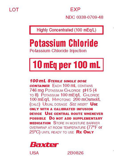 | 2B0826 | Potassium Chloride Injection 10mEq per 100mL | P318220 | 0338-0709-48 |