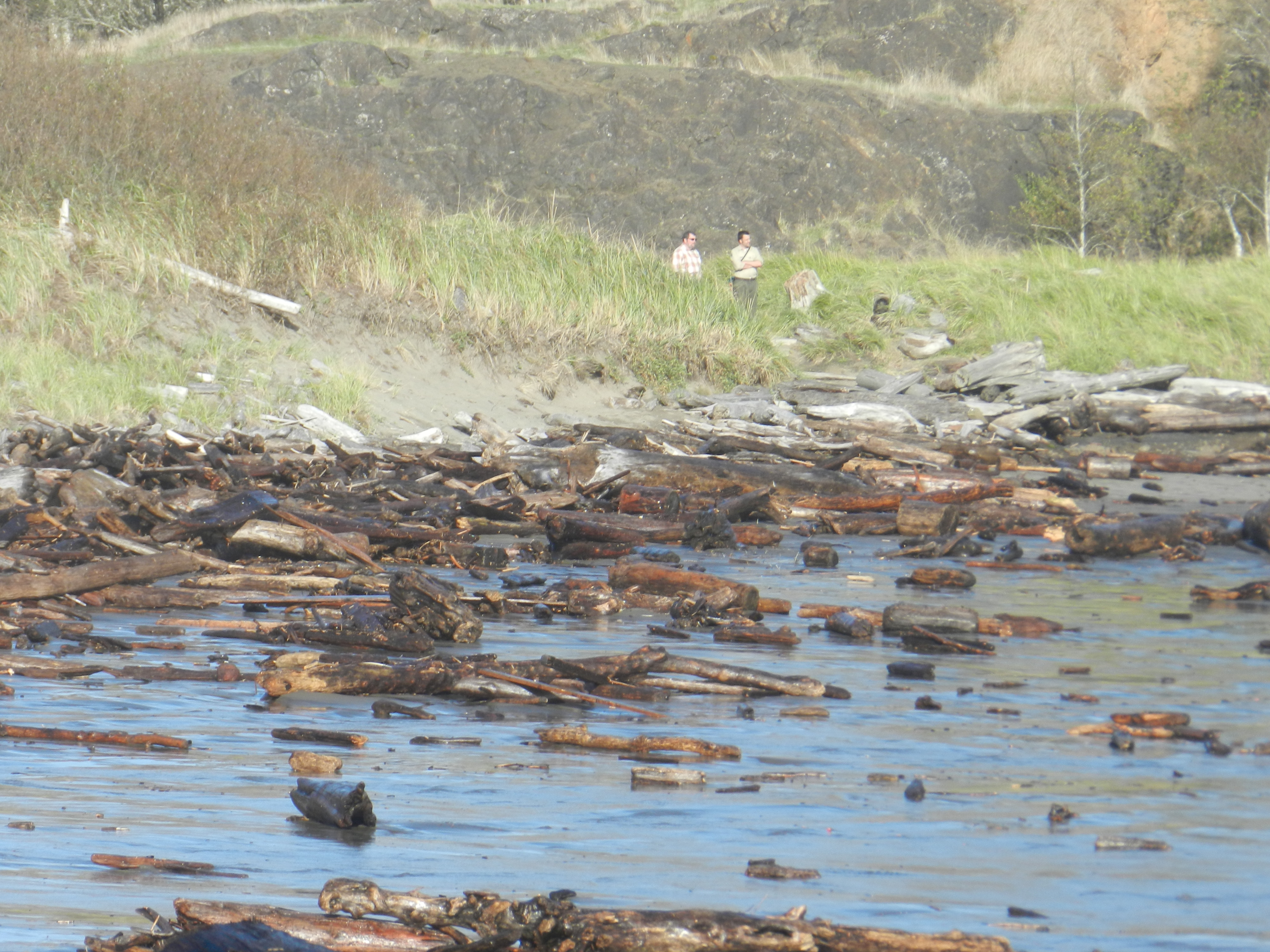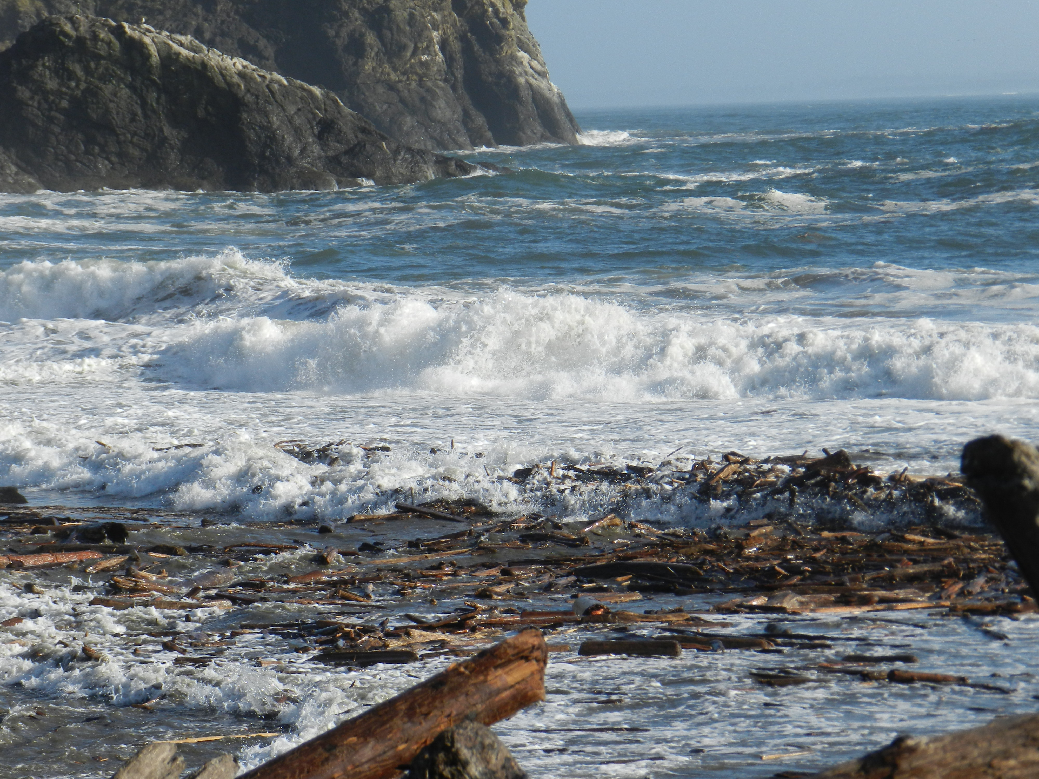 We found lots of logs floating in the water crashing up on the beach. This was Day #1.