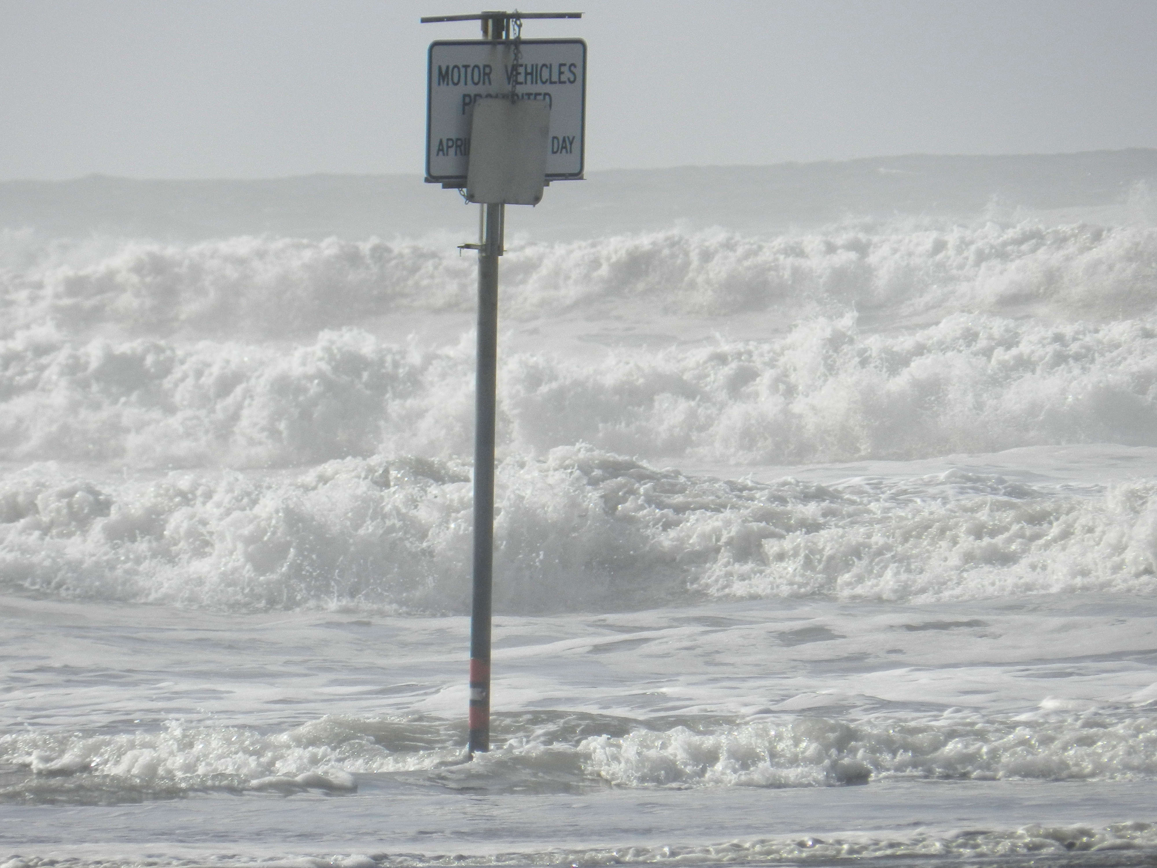 A sign is engulfed in a “sneaker wave” coming at a high rate of speed. The waves were running super high taking anything it could in its path. Though we were not witness to anyone being dragged out into the sea, we were however watchful of where we stood in what we called the “safety zone”.