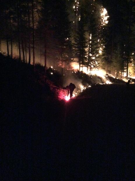 Tatanka Hotshots are focused on in this awesome image. Photographer catches the ambience of the fire.