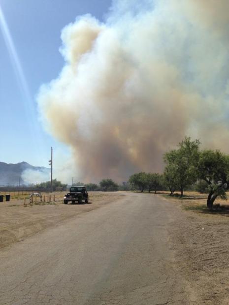 #KearneyRiverFire ignited on Wednesday, June 17, 2015, around 1103 hours this morning located on Arizona State Forest land. It is burning Salt Cedar in the river bed and is expected to burn the bottom of the riverbed.
