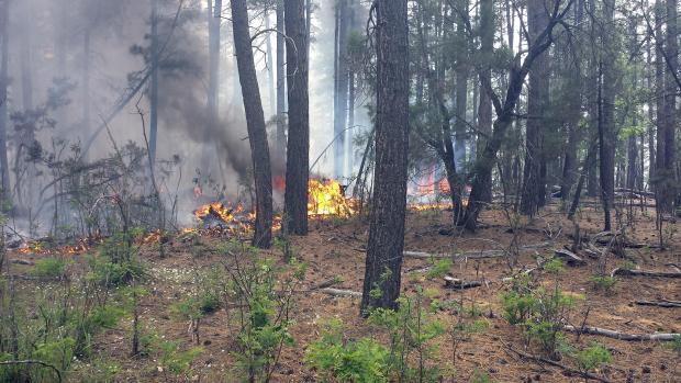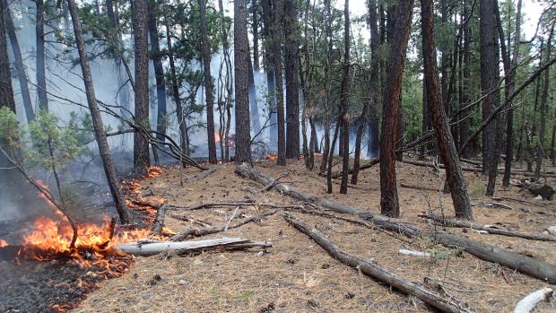 Lightning ignited timber, litter and understory on June 6, 2015, in the Coconino National Forest, located 6 miles North of Strawberry and just South of Highway 260 near the Junction which merges with Highway 87 in Arizona.