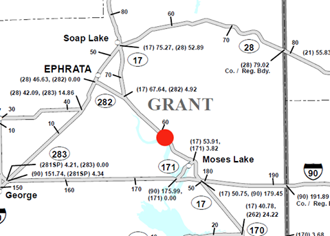 Closures – SR17 in both directions @ Mileposts 60-63 (Between Moses Lake and Ephrata). No ETA on when the roadway will reopen