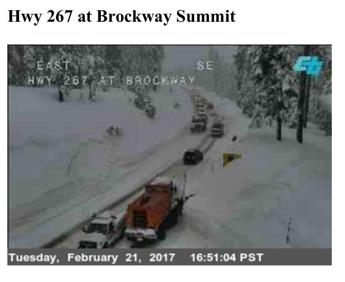 - Closed: I-80 closed due to blizzard conditions over summit. Caltrans crews trying to clear snow. E/B drivers stuck in Colfax. (Media)