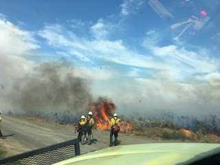 The fire is burning nine miles west of Rexburg and south of Hwy 33 on BLM lands in the Menan Butte area in Idaho. Fire behavior is creeping and running.