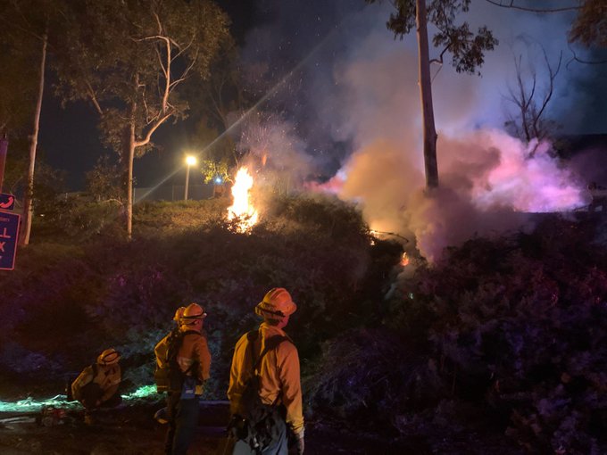 1951 No name Fire. SB 261 Toll Road at I-5. City of Irvine, CA (Orange County). Brush fire. One lane SB was closed temporarily of the 261. No threats to nearby areas.