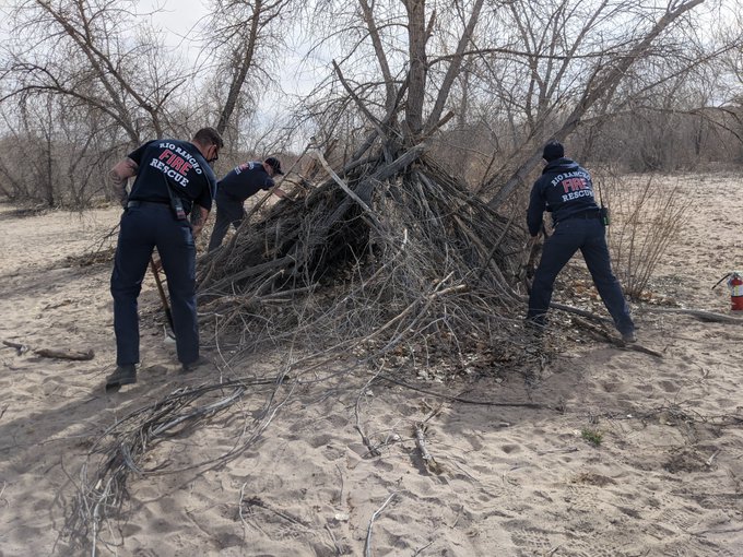 April 2, 2021: Encampment campfire in the Rio Grande Bosque. No fires, fireworks and smoking are not permitted in this area. Photo Credit: Rio Rancho FD
