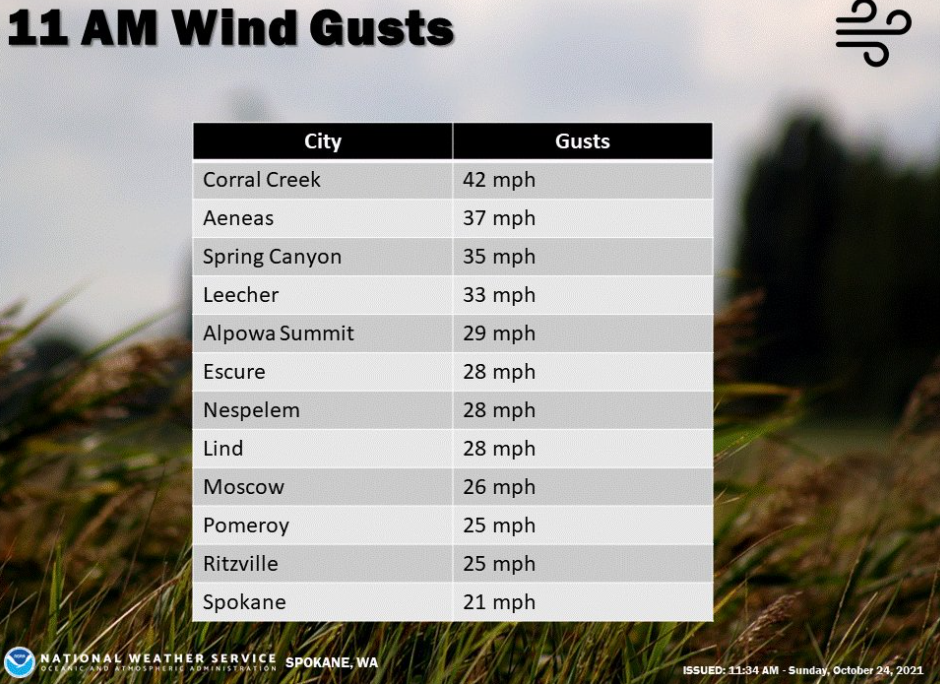 NWS Spokane | It’s been pretty windy. Here’s the proof that the storms are not finished with impacting the northwest. This is to continue throughout the evening into Monday.