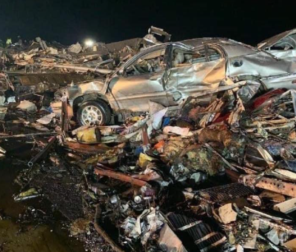 A large tornado tore through Mayfield, KY which is 20-30 miles south of Illinois. There have been 50 confirmed deaths, largely around the Candy Factory in town. (Source: Jefferson FD)