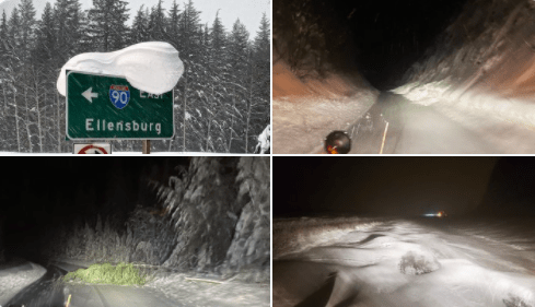 WASHINGTON STATE — Record snowfall has hit many Washington State passes but Snoqualmie Pass seems to be hit the hardest as I-90 is completely shut down, which has travelers and economic shipping coming to a complete halt.