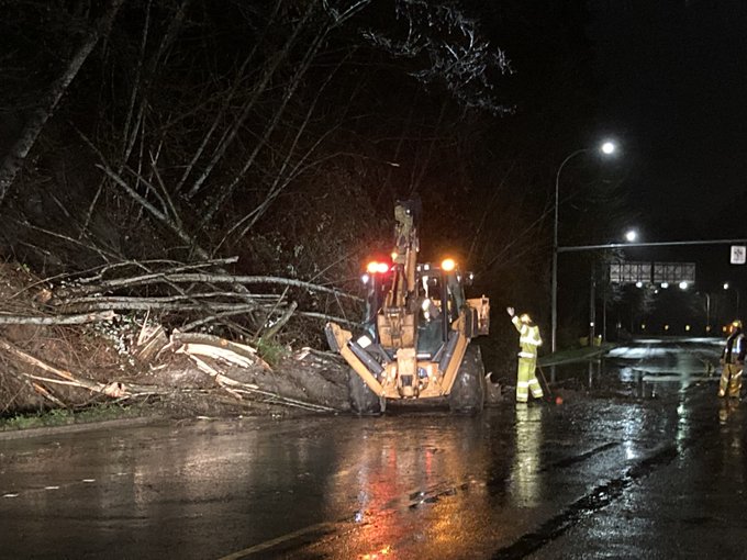 RENTON, Washington — City of Renton street maintenance crews were called out to the area of approximately the 2200 block of Maple Valley Highway, where dirt, mud, debris, and trees fell over the roadway blocking all lanes.