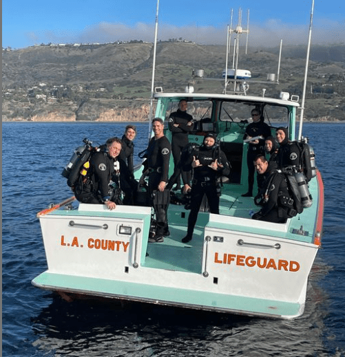 Los Angeles County FD: Dive team members (Lifeguard division) with the Underwater Rescue and Recovery Unit conducted a dive training drill this weekend on Baywatch Cabrillo off of Rancho Palos Verdes.