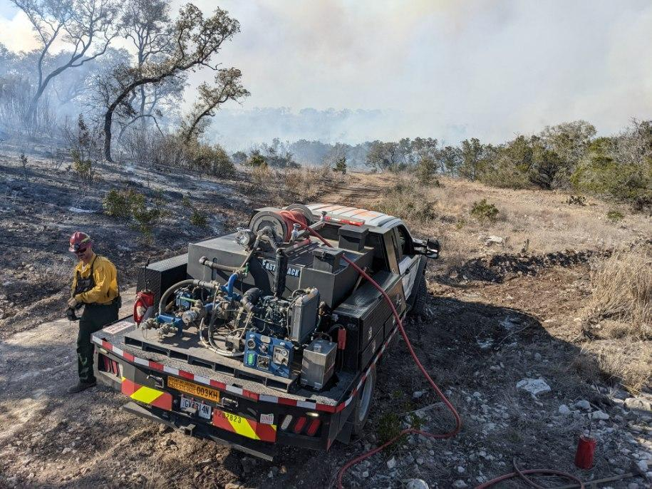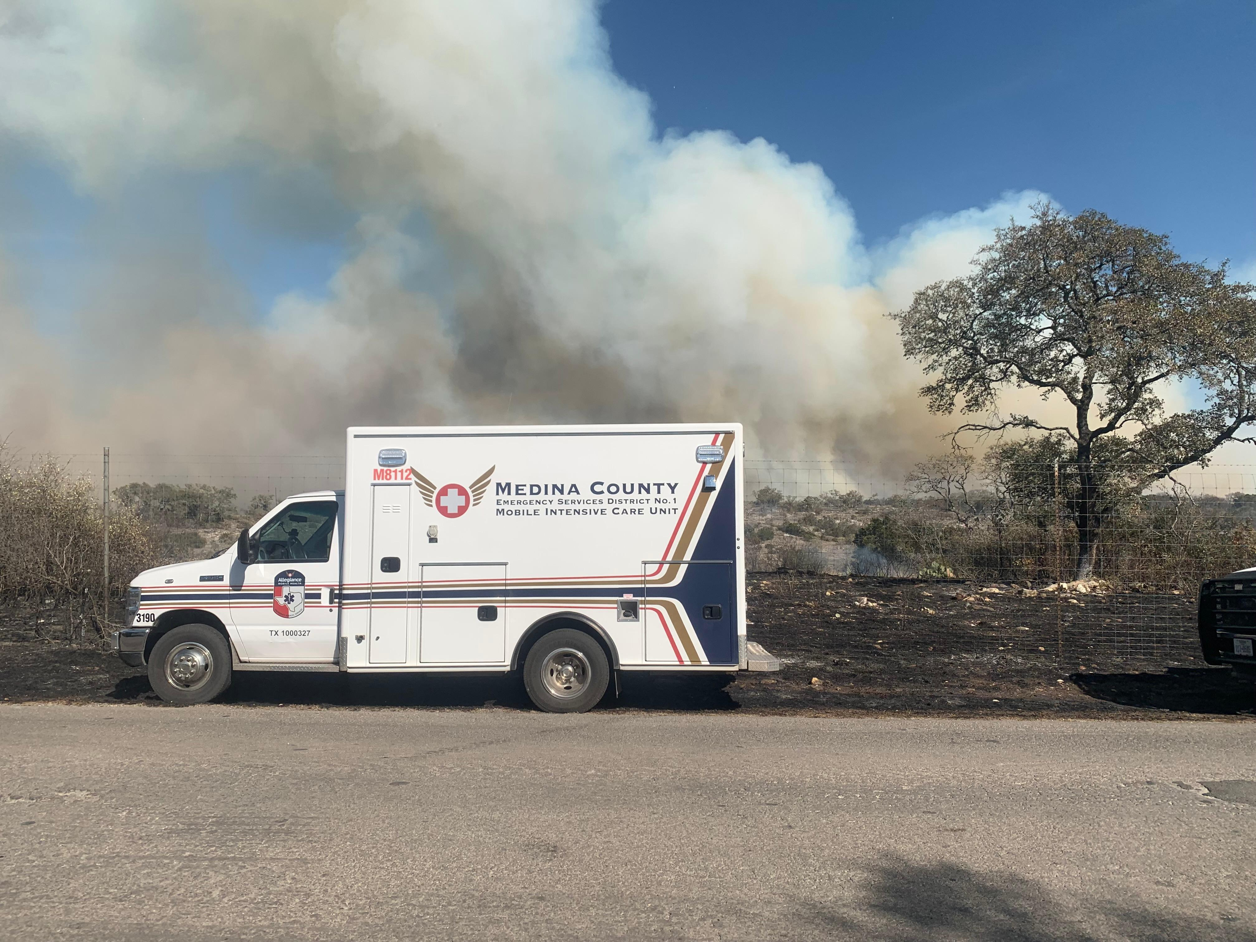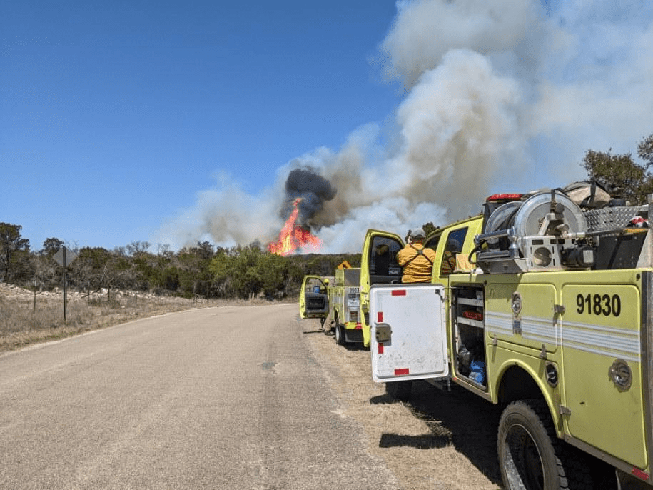 MICO, TX — A wildfire ignited grass and timber on March 25, 2022, around 1700 hours CDT in Mico, Texas, which was caused by a car fire.