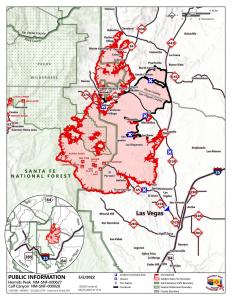 The HERMITS PEAK FIRE is located at the base of Hermit Peak, about 12 miles northwest of Las Vegas, New Mexico, in the Pecos/Las Vegas Ranger District of the Santa Fe National Forest (SFNF).