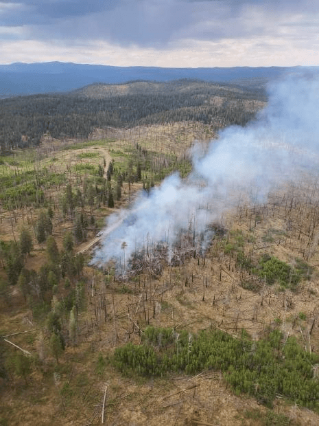 The fire exploded and today, the fire has been 400-plus acres of mixed conifer and dead/down fire fuels from the Wallow Fire.