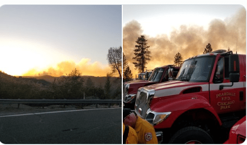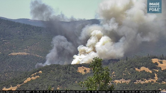“600 acres and is moving fast. Smoke has reached Nevada. The fire was started by a structure fire and is running into a valley. Evacuations are in place.” (1906) – Fire Blogger