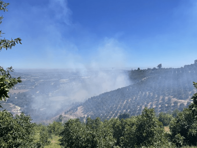 A small brush fire ignited on Saturday, July 2, 2022, around 1354 hours in the 43500 block of Calamar Road in Temecula, California.