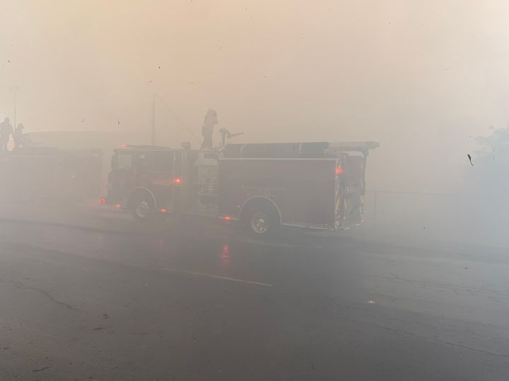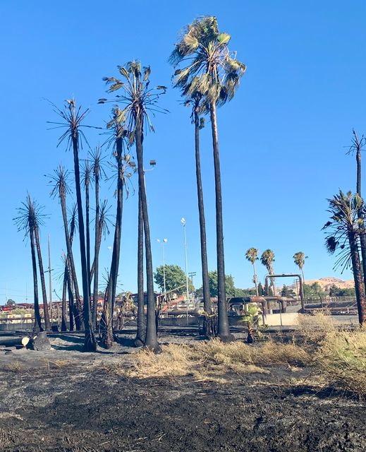 Around 1430 hours PT, the smoke was so heavy, that visibility became poor due to the numerous palm trees in the area torching off. About 15 minutes later, the brush fire began moving towards a decommissioned power plant in