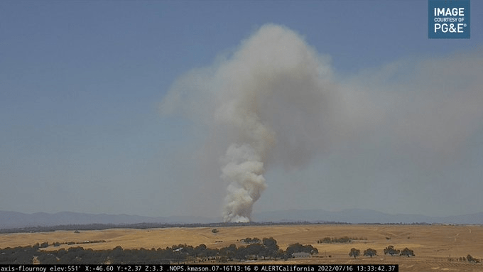 The RAINBOW FIRE is burning off of Rainbow Bridge and Stagecoach Road, northwest of Corning (Tehama County) in California’s Rancho Tehama Reserve which started on the afternoon of July 16, 2022, around 1305 hours PT.