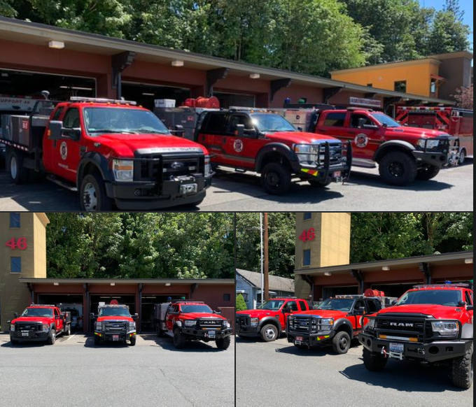 The Arlington-Stanwood Firefighters IAFF local 3438 merged into the North County Fire Authority, which now has three brush trucks BR97, BR90, and BR46. Not only do the combined fire departments “share” training together, but they also pool their resources together – a win-win for the community and for its firefighting forces!
