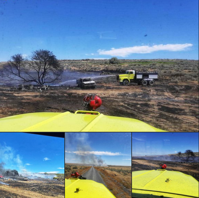 It was reported that two Officers were first due, activated their two dry chem fire extinguishers, and knocked down the fire were dispatched at 1045 hours this morning until more fire resources arrived on the scene. The fire was said to be contained to the machinery and only having a small extension to the wildland-urban interface (the field). Status: Contained 1156 hours, Control: at 1205 hours PT. Resources: SCFD13, WA DNR, SCFD6. Comm Center: WA DNR – NEC.