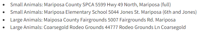 LARGE ANIMAL SHELTER 1: Mariposa County Fairgrounds, 5007 Fairgrounds Road, Mariposa, CA.