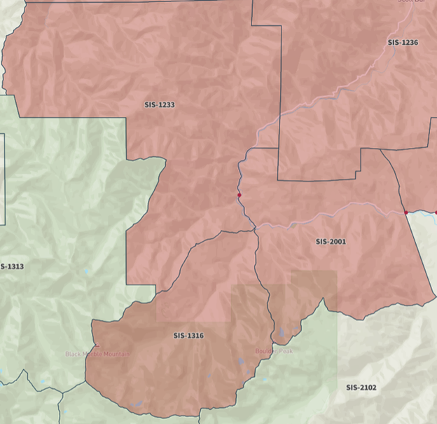 – All areas South of Scott River Road and Scott Bar Mountain Lookout Road