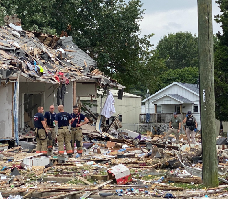 An unknown explosion on Weinbach in Evansville killed three people according to sources and about 39 houses were extensively damaged or leveled.