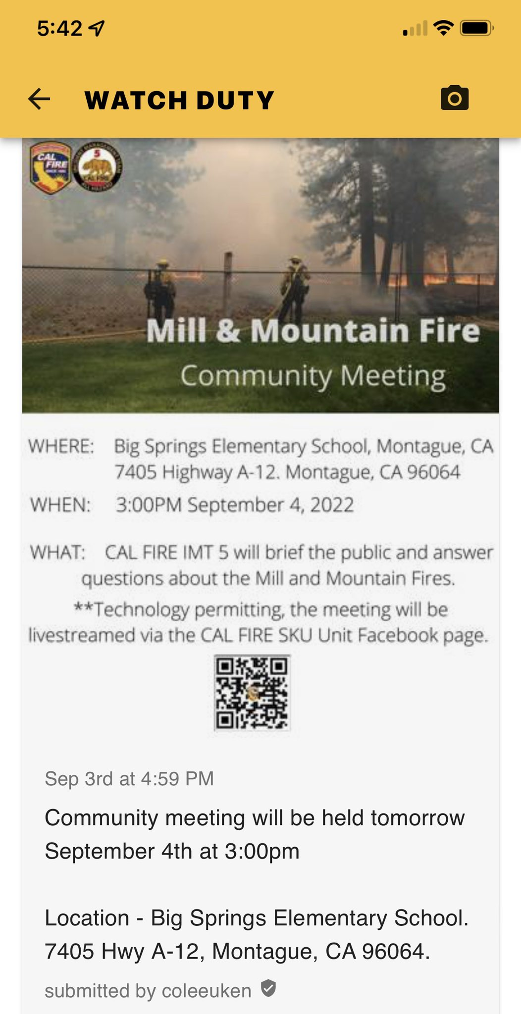 American Red Cross California Gold Country: If you have evacuated the Mill Fire or the Mountain Fire and you forgot your meds, medical device, eyeglasses, etc. The Red Cross can help you. STOP by the Yreka shelter (Karuk Wellness Center in Yreka) to meet with disaster health volunteers to replace lost/forgotten medical items. DO NOT return to the evacuated areas!