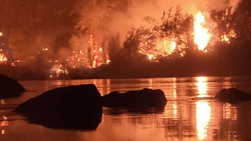 Gig Harbor Fire & Medic One: “Update from one of our Wildland Structure Protection Specialists deployed to assist on the fire in Southern Oregon. As the fire threatened structures, our assignment was to protect the Smullin Visitor Center in Rand on the Rogue River. We cleared the brush around the structure, installed sprinklers, and wrapped some buildings. The pictured is a historic boat house building in the 1930s. We also worked with agency resources advisors to help plan out what we need to protect and what has historical significance.” – 9/2/2022 1357 PT
