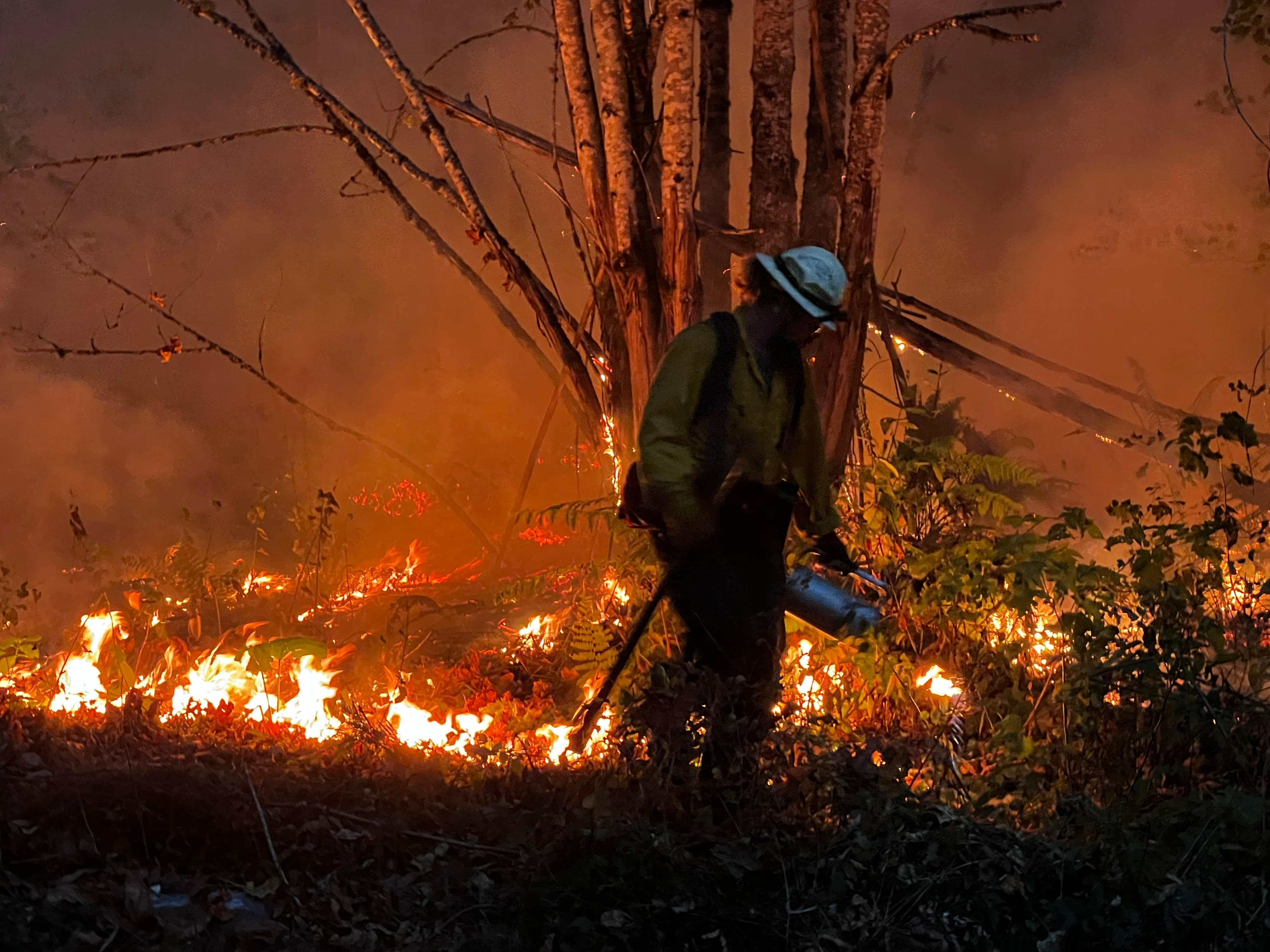 Fire behavior remains moderate with flanking, backing, and creeping.