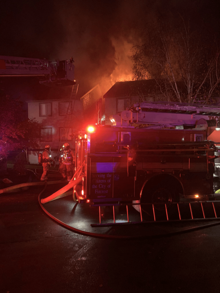 It is unknown how many units have been damaged or destroyed by fire and/or water or if there are any displaced residents.