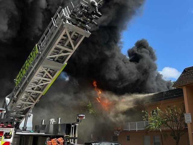 MIAMI-DADE, FLORIDA — A morning fire ripped through an apartment building on Saturday, January 28, 2023, prompting more than 40 Miami0Dade Fire Rescue personnel and fire/EMS units to be dispatched to the scene.