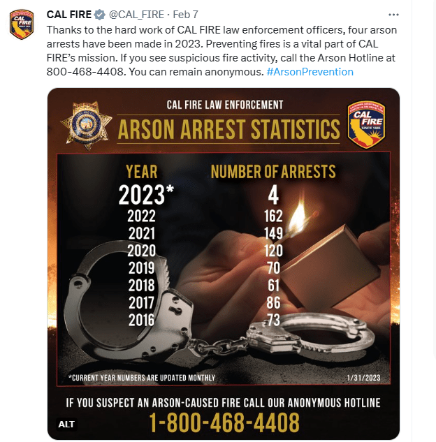 According to the CAL FIRE Incidents page, there have been 145 incidents and an estimated 35 acres of land burned. No fatalities (civilian or fire personnel) were reported. Additionally, no structures were listed as damaged or destroyed. Source: https://www.fire.ca.gov/incidents/2023/