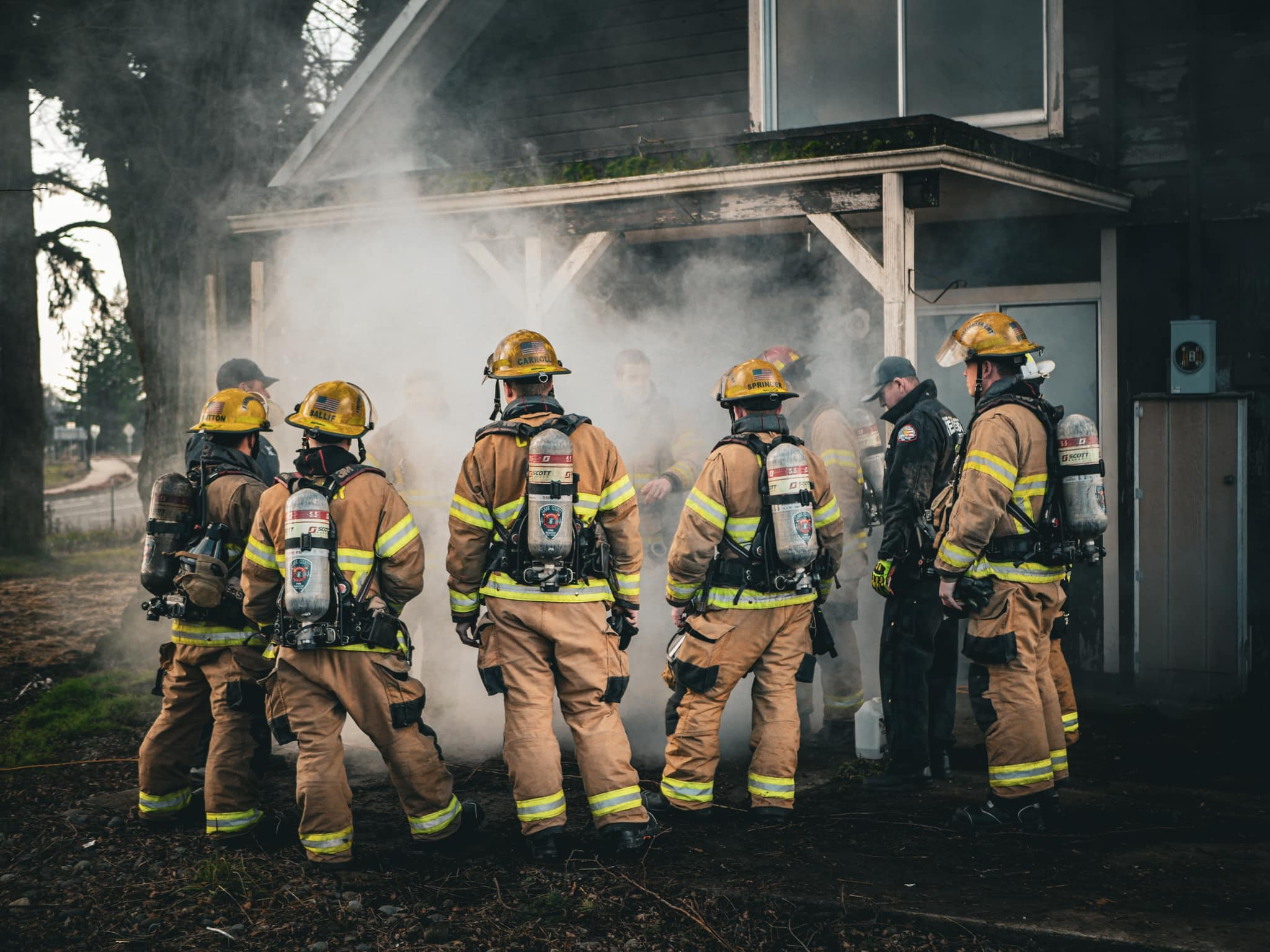 CLARK COUNTY PROFESSIONAL FIREFIGHTERS IAFF LOCAL 3674: Lateral recruits participated in search and rescue training in La Center. Instructors used smoke machines simulating low to zero visibility environments both in exterior and interior “fire” situations. Photo Credit:/Source: IAFF3674