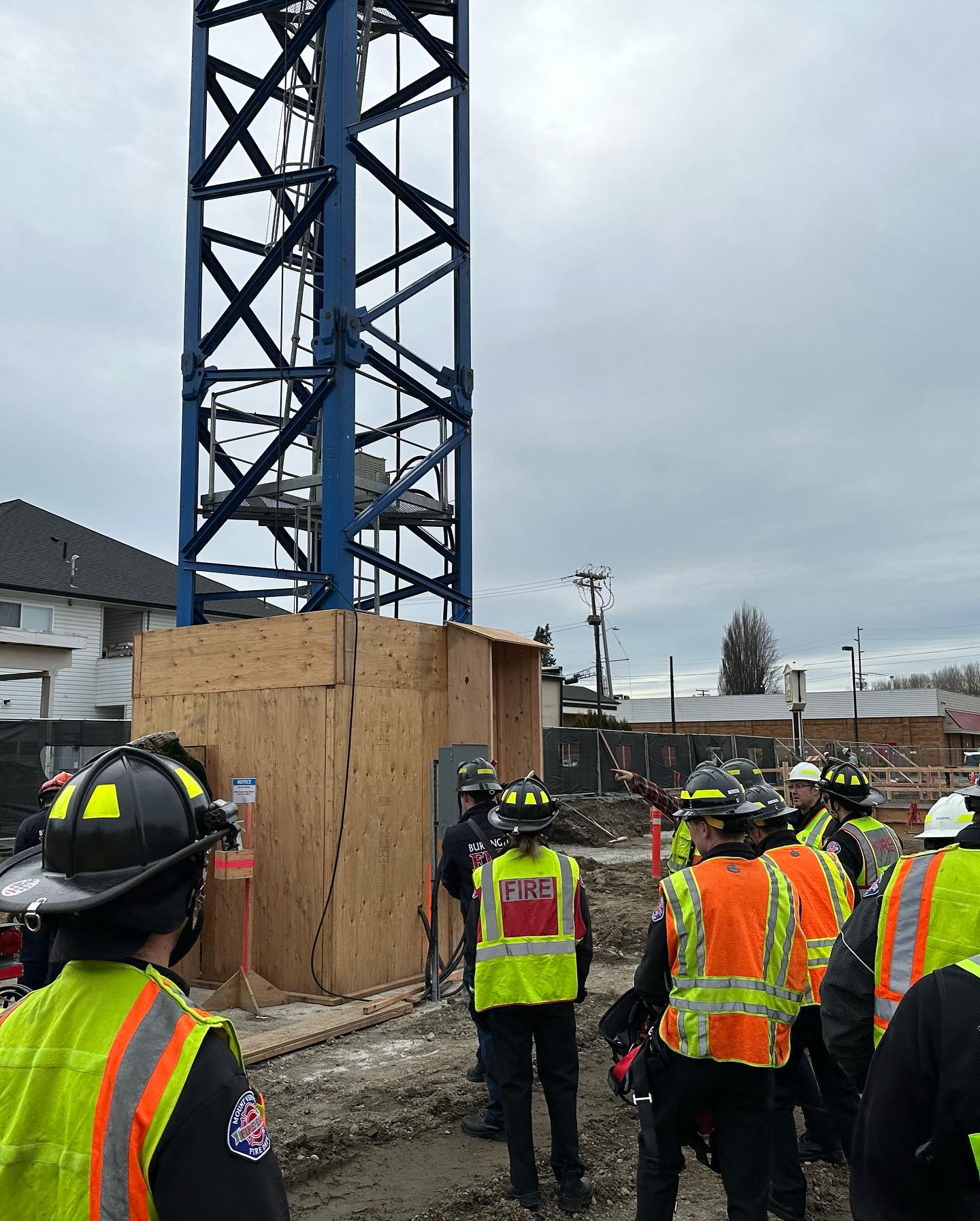 MOUNT VERNON FIREFIGHTERS AND PARAMEDICS: MVFD hosted a joint training opportunity at the Mount Vernon Public Libary Commons Project in the downtown corridor along with several of its critical mutual aid partners, BURLINGTON PROFESSIONAL FIREFIGHTERS LOCAL 4111 and the ANACORTES PROFESSIONAL FIREFIGHTERS. The Fire Department states the crane adds a unique element of complexity to any potential incident. With this type of training, it gives those who are responding to a potentially complex incident like this to be highly skilled, knowledge of how everyone is on the same page and to be able to work in unison. Photo Credit/Source: MVFD